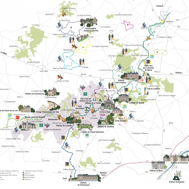 Turn the Vendômois region map over and discover the Loir valley: chateaux, gardens, troglodytic houses, wine cellars…