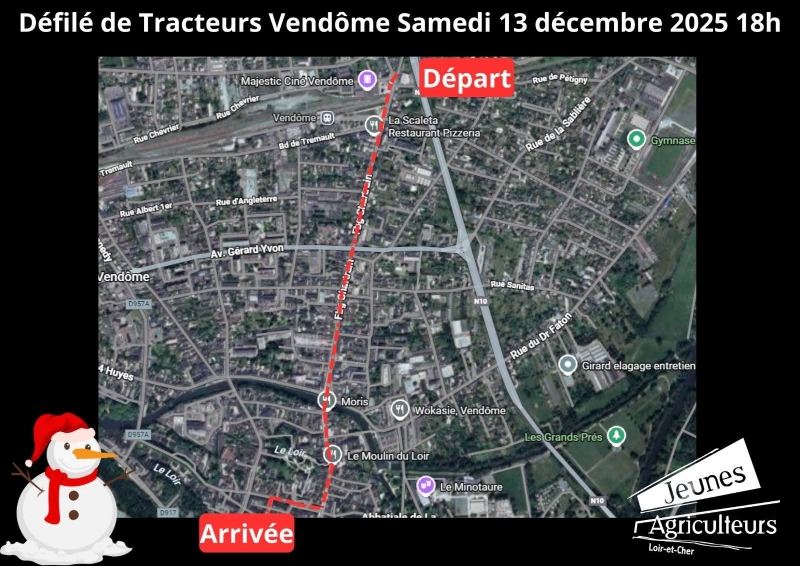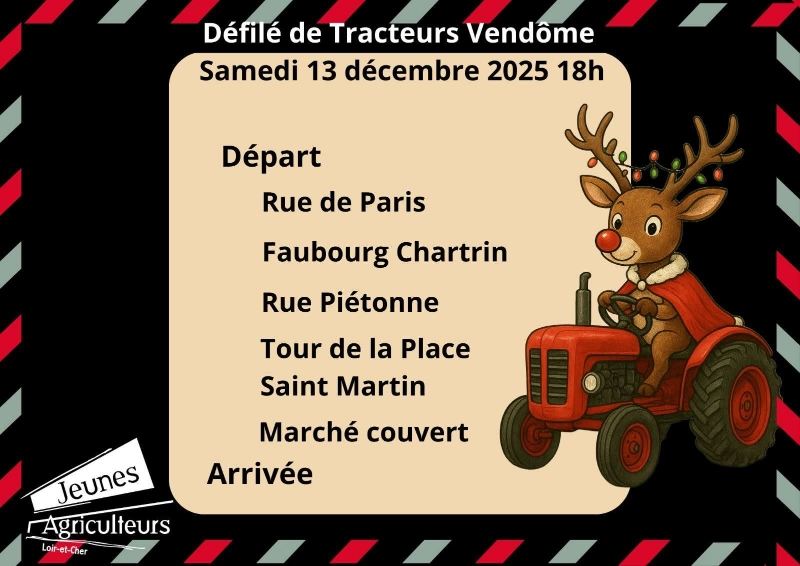 Marché de Noël à la ferme à Vendôme. Dans le cadre du marché de Noël, venez profiter de la mini-ferme, du marché fermier et gourmand, du marché artisanal ainsi que de la tombola ; le samedi, un défilé de tracteurs animera la ville à 18h, avec la présence du car-podium du Conseil départemental.